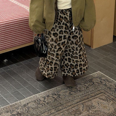비다이어리.호피레오파드기모와이드팬츠