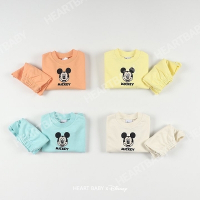 하트베이비.(정품)미키얼굴자수반바지상하