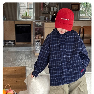 비다이어리.네이비체크후드바람막이자켓