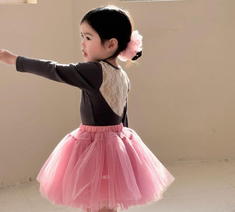 [수입]시스루핑크볼륨스커트셋